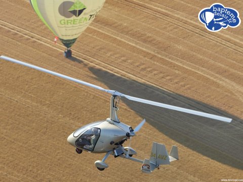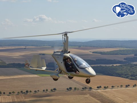 Quelques mots d’explication sur les consignes de sécurité sur la piste et en vol, votre pilote vous aidera à vous équiper d’un casque à visière et à attacher votre ceinture. Vous êtes prêt ? Le moteur démarre puis c’est le roulage vers la piste. Derniers essais moteurs puis le pilote pénètre sur la piste de décollage. Moteur plein gaz, le rotor accélère tout d’abord puis c’est le lâché des freins. Le chariot de l’autogire tressaute sur la piste en herbe et accélère... En quelques dizaines de mètres vous êtes en l’air… Vous serez fascinés de voir le sol se dérober sous les roues de l’appareil… La prise d’altitude est rapide, vous sentez les vibrations du rotor et le vent sur votre peau. La griserie est totale ! Mais il est déjà l’heure de revenir au terrain. L’atterrissage se fait sur quelques mètres seulement, suspendu sous le rotor tournant en inertie. L’autogire c’est tellement pratique !