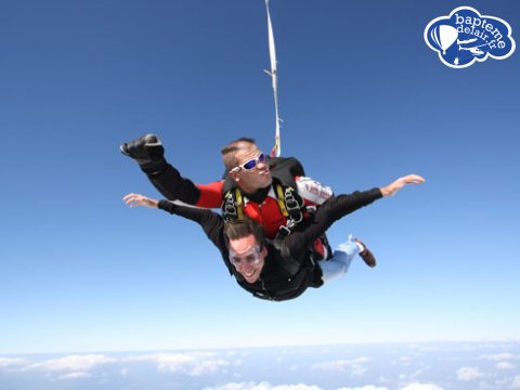 Le saut tandem est désormais la solution la plus répandue car la plus facile et la moins chronophage pour vous: Vous êtes accroché solidement au harnais d’un parachutiste professionnel et vous sautez en binôme avec lui. Le briefing dure environ 30 min et le pro s’occupe de tout ou presque (vous devez juste prendre la position cambrée expliquée au briefing et sourire à la caméra s’il y en a une !)