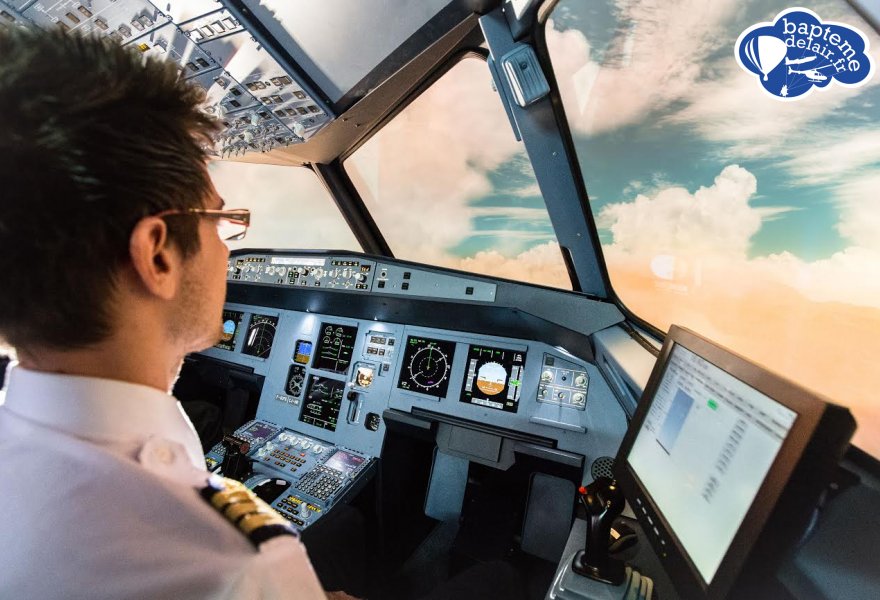 Equipement: Ce simulateur immersif à l'échelle 1 est une réplique très réaliste du cockpit de l'A320. A base fixe et avec un visuel panoramique hyper réaliste, il est idéal pour une immersion dans le monde des pilotes de ligne à moindre coût.