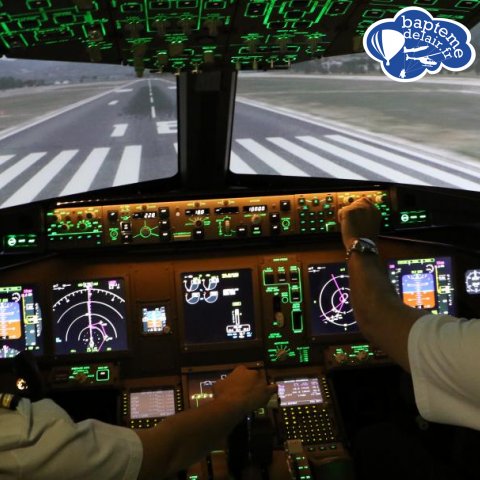 Infos complémentaires: Les accompagnateurs peuvent suivre votre vol avec vous dans le cockpit du simulateur avion de ligne ou sur nos écrans HD (2 accompagnateurs maximum dans le cockpit).