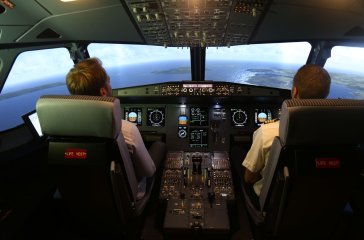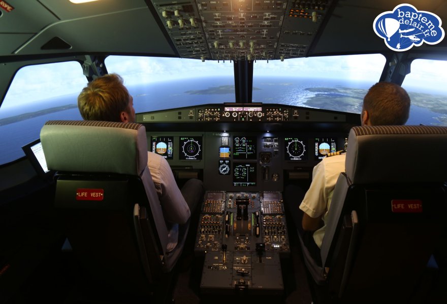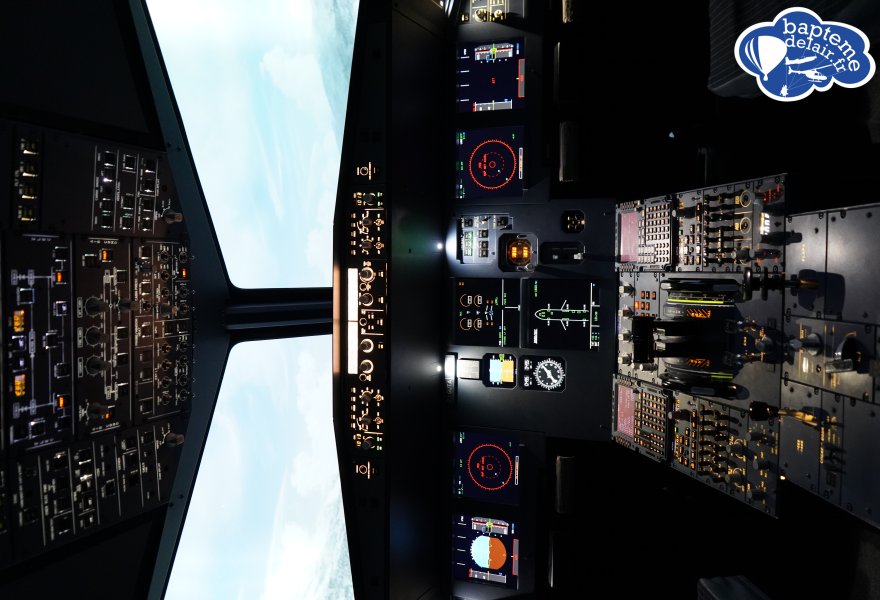 Equipement: Le simulateur de vol utilisé est de type A320. C'est un cockpit totalement immersif avec une projection du paysage sur 240°. L'ordinateur de bord (MCDU), les switchs et autres boutons poussoirs sont fonctionnels en quasi totalité. Le réalisme est époustouflant pour le grand public. Des pilotes de ligne peuvent même y trouver un intérêt pour entrainer certaines procédures.