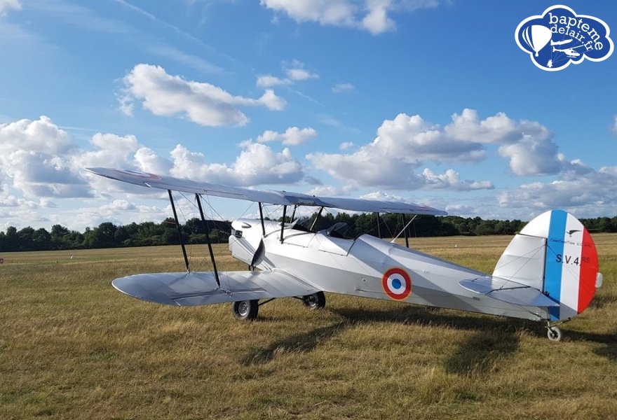 Nous vous proposons de vivre un véritable voyage dans le temps au long d'une balade aérienne à bord de la réplique à l'échélle 1 d'un aéronef biplan mythique, le Stampe SV-4 ! Le Stampe SV-4 est un ULM biplan conçu pour l'entraînement qui fut plus tard utilisé pour la voltige aérienne. Les lettres « SV » de son nom viennent des ingénieurs belges Jean Stampe et Maurice Vertongen, concepteurs de cet avion. C'est aussi le sigle de l'entreprise belge Stampe et Vertongen, créée le 17 octobre 1923.